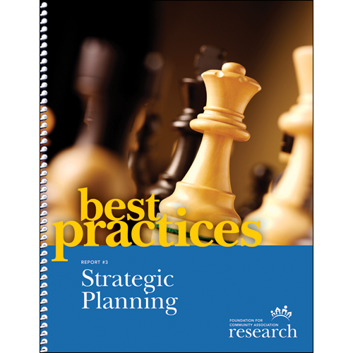 Strategic planning is more than ensuring your association will remain financially sound and be able to maintain its reserves—it's projecting where your association expects to be in five, ten, or fifteen years-and how your association will get there. It is a systematic planning process involving a number of steps that identify the current status of the association, including its mission, vision for the future, operating values, needs, goals, prioritized actions and strategies, action plans, and monitoring plans. This Best Practices Report, published by the Foundation for Community Association Research, includes performance benchmarks on how to establish a strategic plan as well as case studies that illustrate the implementation of those benchmarks in real communities.