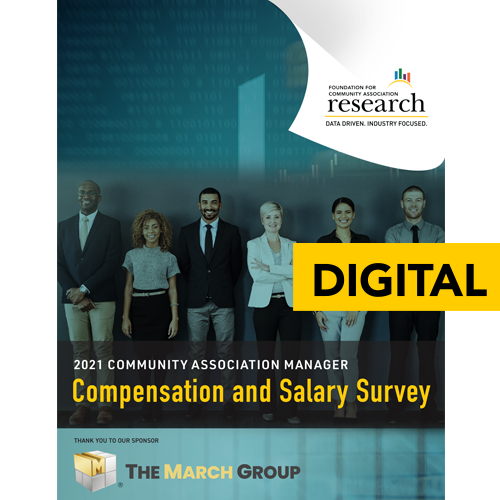 The 2021 Community Association Manager Compensation and Salary Survey is the seventh salary survey conducted by the Foundation for Community Association Research since the year 2000. Each edition provides an interesting snapshot of the field and enhances understanding of this growing and dynamic profession.